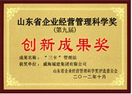 成果名稱:“三卡“管理獎 獲獎單位:威海城建集團有限公司 頒獎單位:山東省企業(yè)委員會頒發(fā)